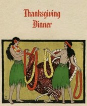 As you can imagine, we’ve all been looking forward to some quality family time over the holiday season. So this year I thought it would be fun to put a new spin on that tired old Thanksgiving tradition. Since we’ve all been dying for a Hawaiian vacation, but can’t afford the trip with the liens and penalties still outstanding, I decided to go with a tiki theme right here at home.