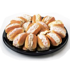 In the 1960s (I have heard) finger sandwiches were the height of party chic, a glamorous staple of la dolce vita American style. Finger rolls, not to be confused with finger waves, lend themselves to a variety of fillings: crab, lobster, chicken, egg or ham salad are the usual suspects. Anything else is considered “ethnic food” by my folks, so we don’t serve liverwurst, cream cheese and olive or anything more exotic than protein and mayonnaise with the odd pinch of pepper. But if you like to walk on the wide side, you can slip a little pineapple in with the ham or a little tarragon with the chicken. Improvise ferchrissakes, as my Grandpa Harvey used to say (usually right before he said, “Who the hell ate all the crab rolls, ferchrissakes?”).