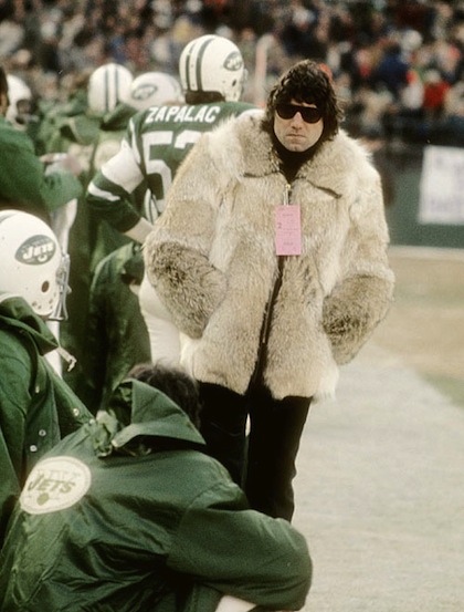 For instance when I see Broadway Joe wearing his pimpin’ big mink coat. That’s when it all comes back to me — the dry look, curly perms, leisure suits, ABBA.