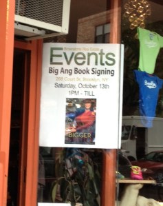 So today I was walking to the gym, musing about one thing and another, when the sight of this stopped me dead in my tracks. Now sadly I am going to be out of town the weekend of the big book tour, but I will certainly be sending someone to snap a photo and maybe even get a signed copy of Big Ang’s opus, “Bigger is Better.” The old town will never be the same. Sigh.