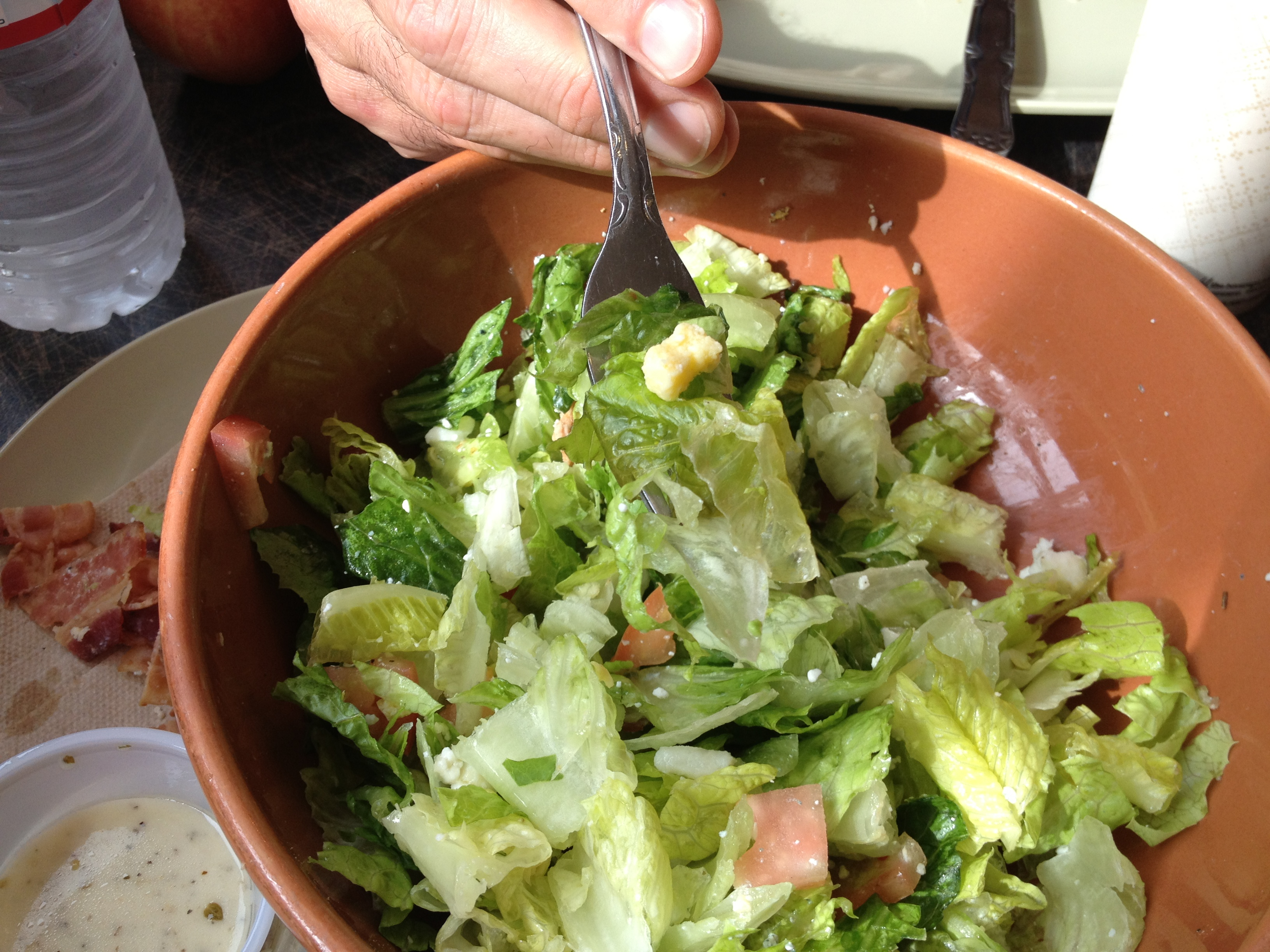 Anyway, the vibra-pager eventually lit up and we retrieved our food. Mr. Slattern’s turkey and avocado sandwich was entirely acceptable, even tasty. It came with a pickle and an apple, which made for a satisfying lunch that left him fueled up and ready to drive the remaining three hours. My Panera dining experience, however, was considerably less spectacular, consisting as it did of chicken and avocado atop a Cobb salad made of previously frozen romaine, tasteless tomatoes and some kind of chopped egg product, in which the texture of both the yolk and the white reminded me more of Peeps than anything chicken-related I have ever encountered. Perhaps it’s a seasonal thing, putting Peep eggs into a salad; however, one would expect to see that at Easter rather than harvest time. And as the gag inducing egg bits were both indistinguishable and inseparable from the bleu cheese crumbles, I eventually just gave up and lunched on the chicken and avocado. Don’t even get me started on the “vinaigrette.” The apple, however, was delicious.